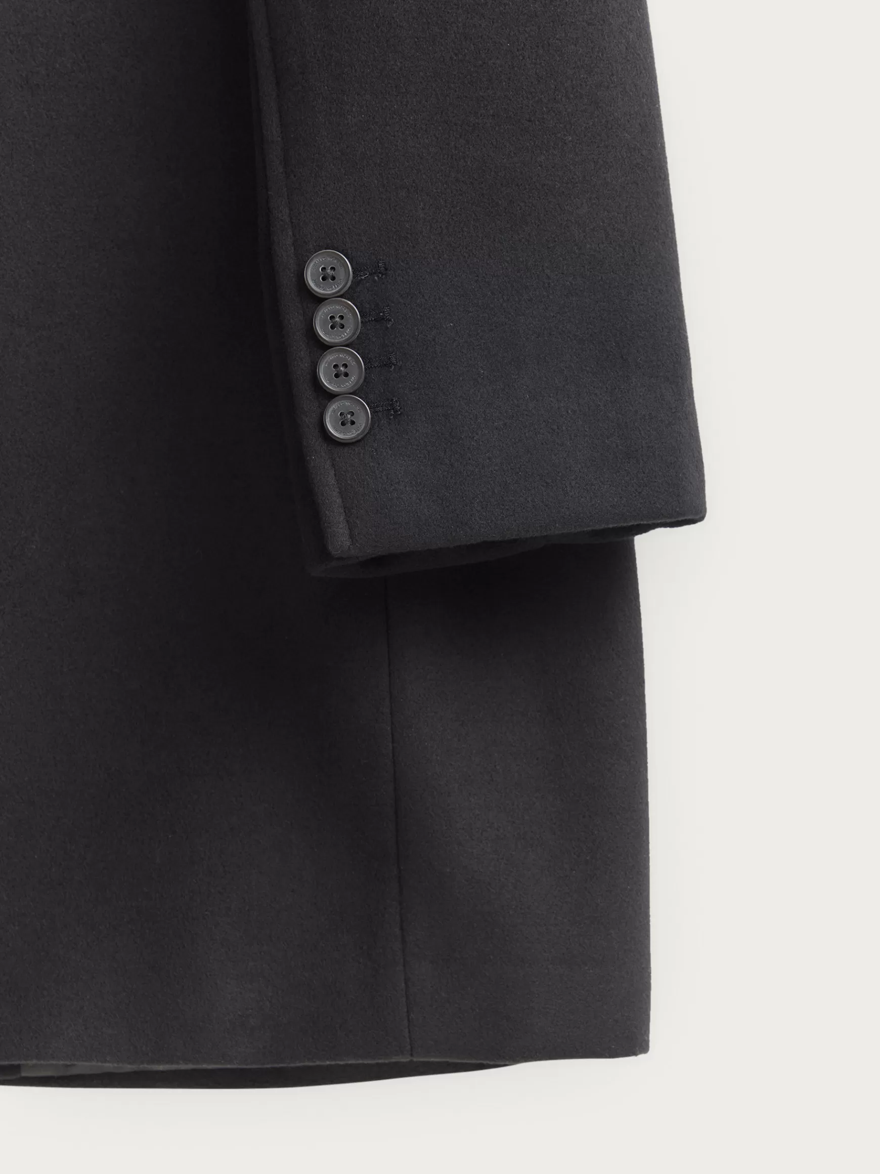 Abrigo de paño liso con cuello y solapa. Cierre central mediante botones, manga larga con botones en su terminación y …