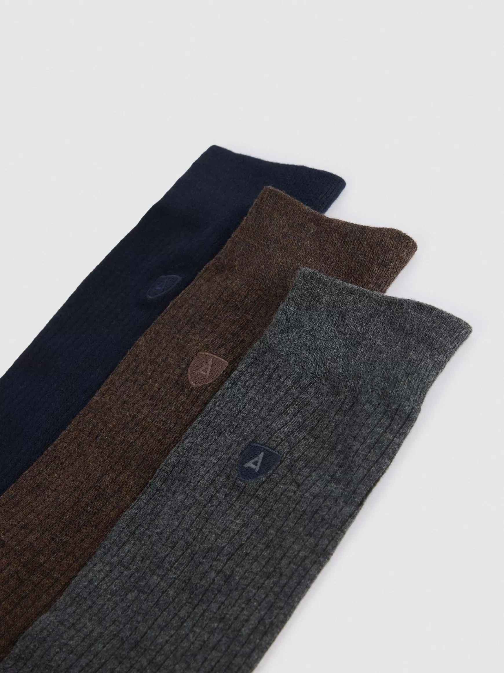 Pack de 3 calcetines de caña media confeccionados en algodón con diferentes diseños lisos, con líneas o detalles est…