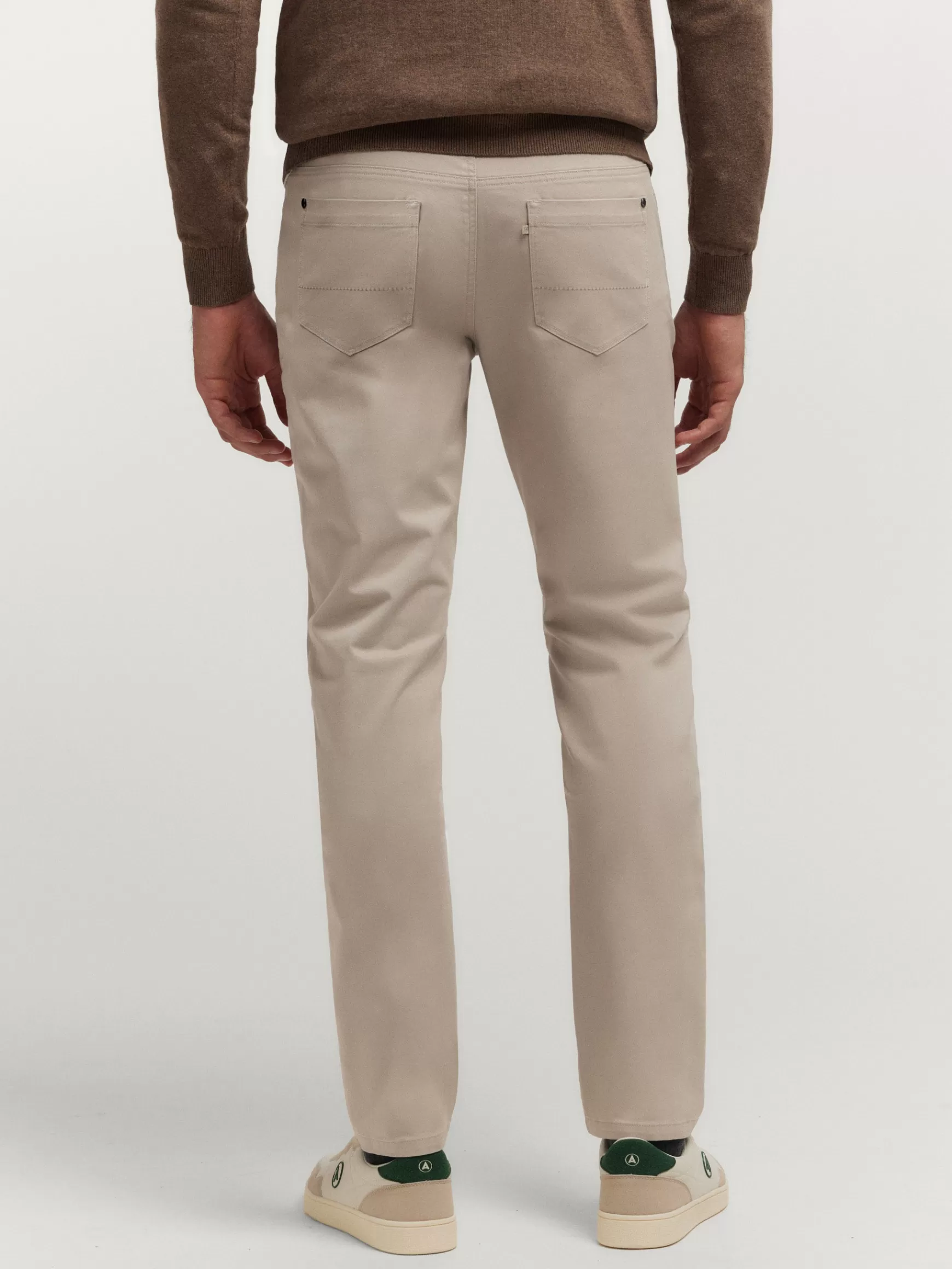 Pantalón de corte slim fit con 5 bolsillos. Cierre central mediante botón y cremallera, bolsillo cerillero y dos bolsi…