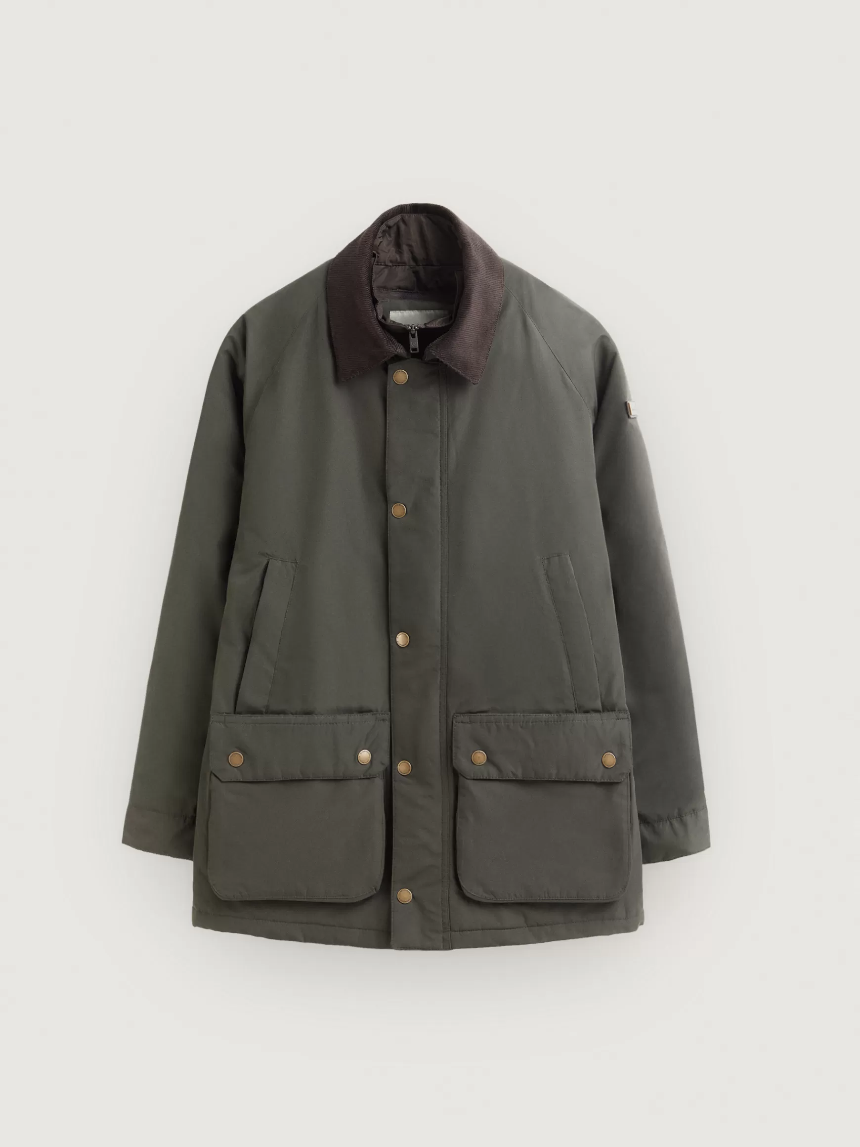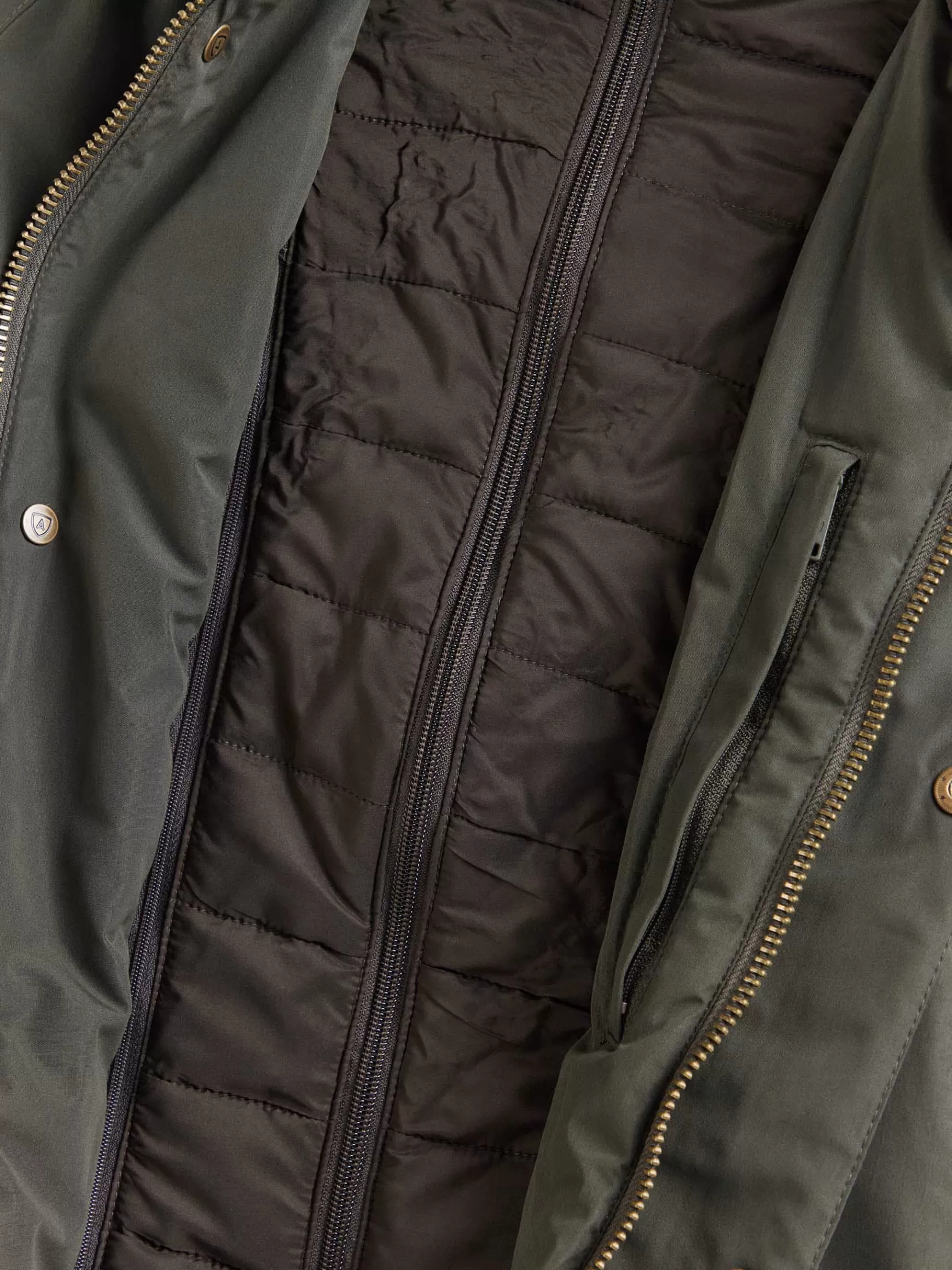 Parka con cuello a contraste y cortavientos interior desmontable. Cierre central mediante cremallera oculta por tapeta d…