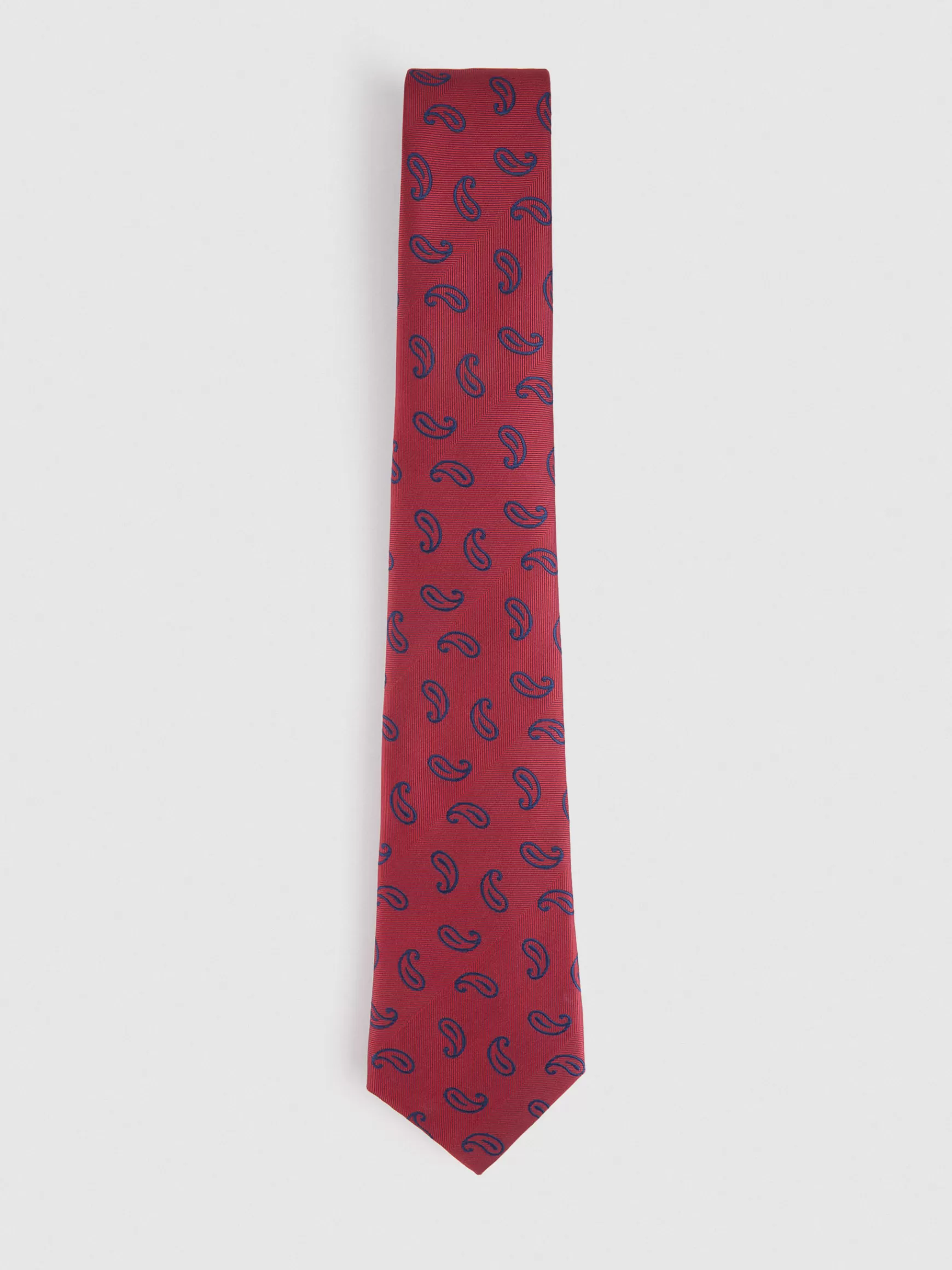 Corbata estilo jacquard con diseño estampado a contraste confeccionada en 100% poliéster. Cuenta con el logo de la marca grabado en el interior.