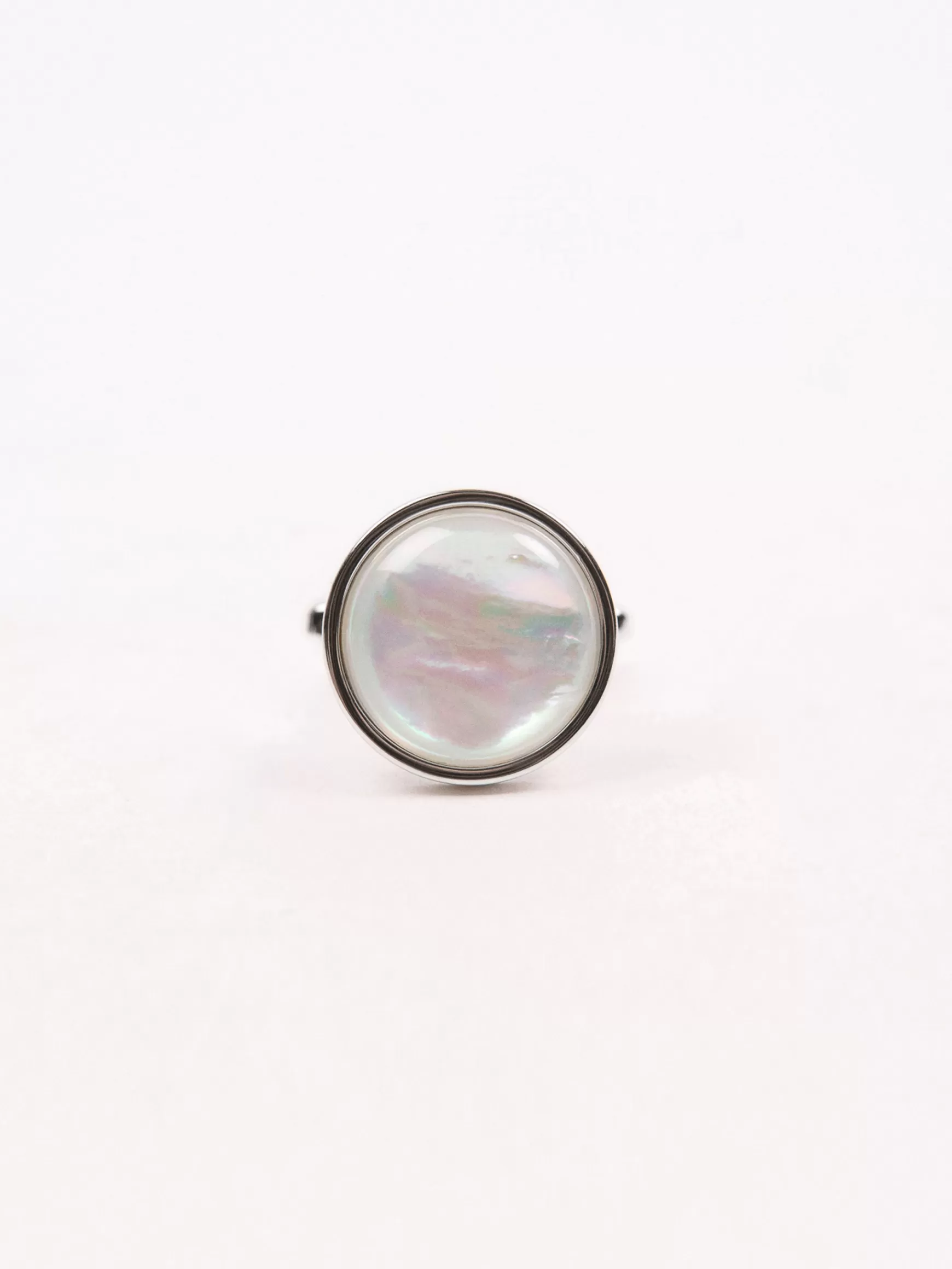Gemelo metálico de forma redonda que cuenta con engarce de piedra natural azul.