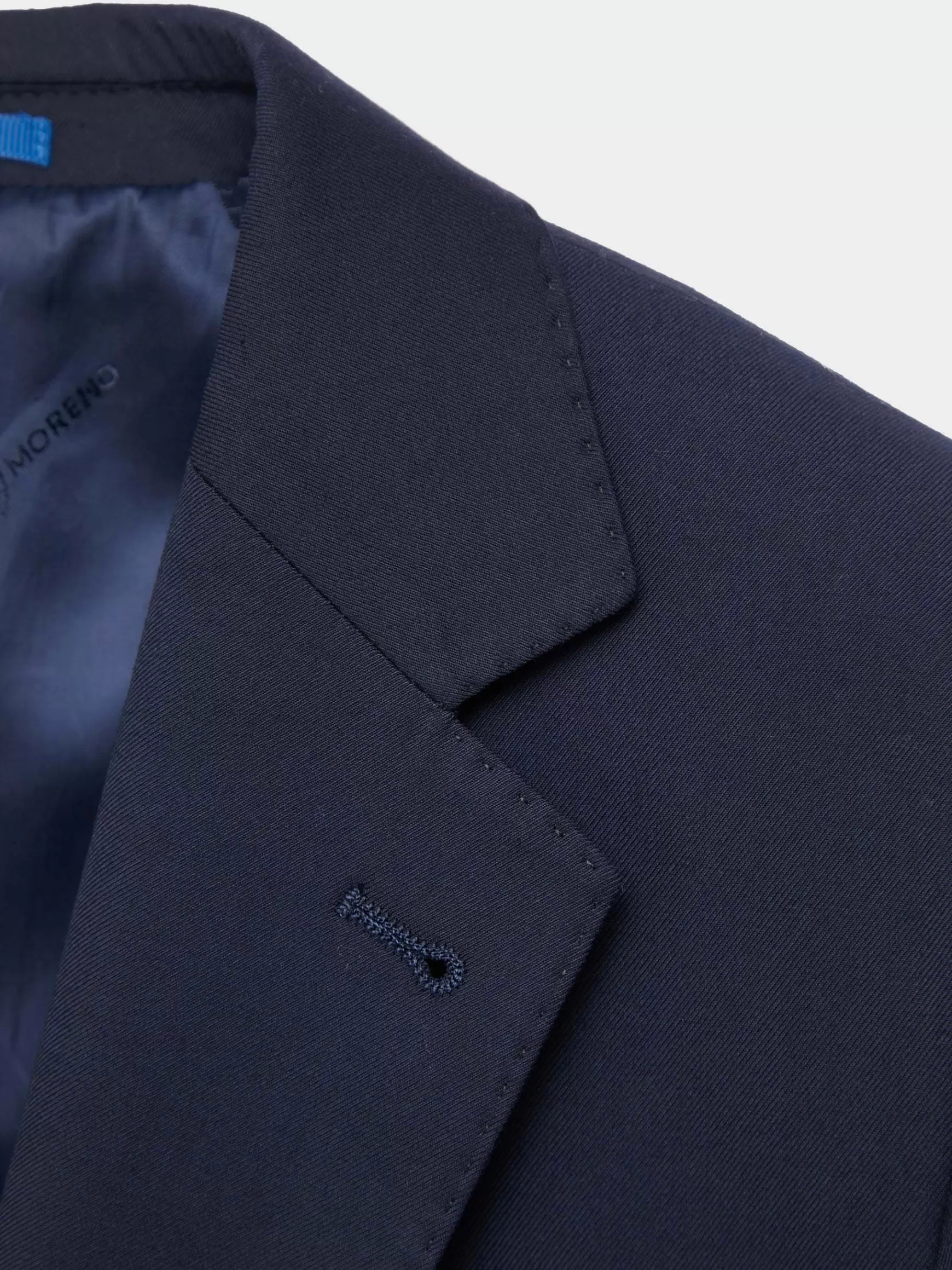 Americana de cierre central mediante dos botones y con cuello y solapa. Bolsillo de ojal en el pecho, tres bolsillos de solapa en la cintura y puños con botones en su terminación. Interior forrado y con bolsillos.