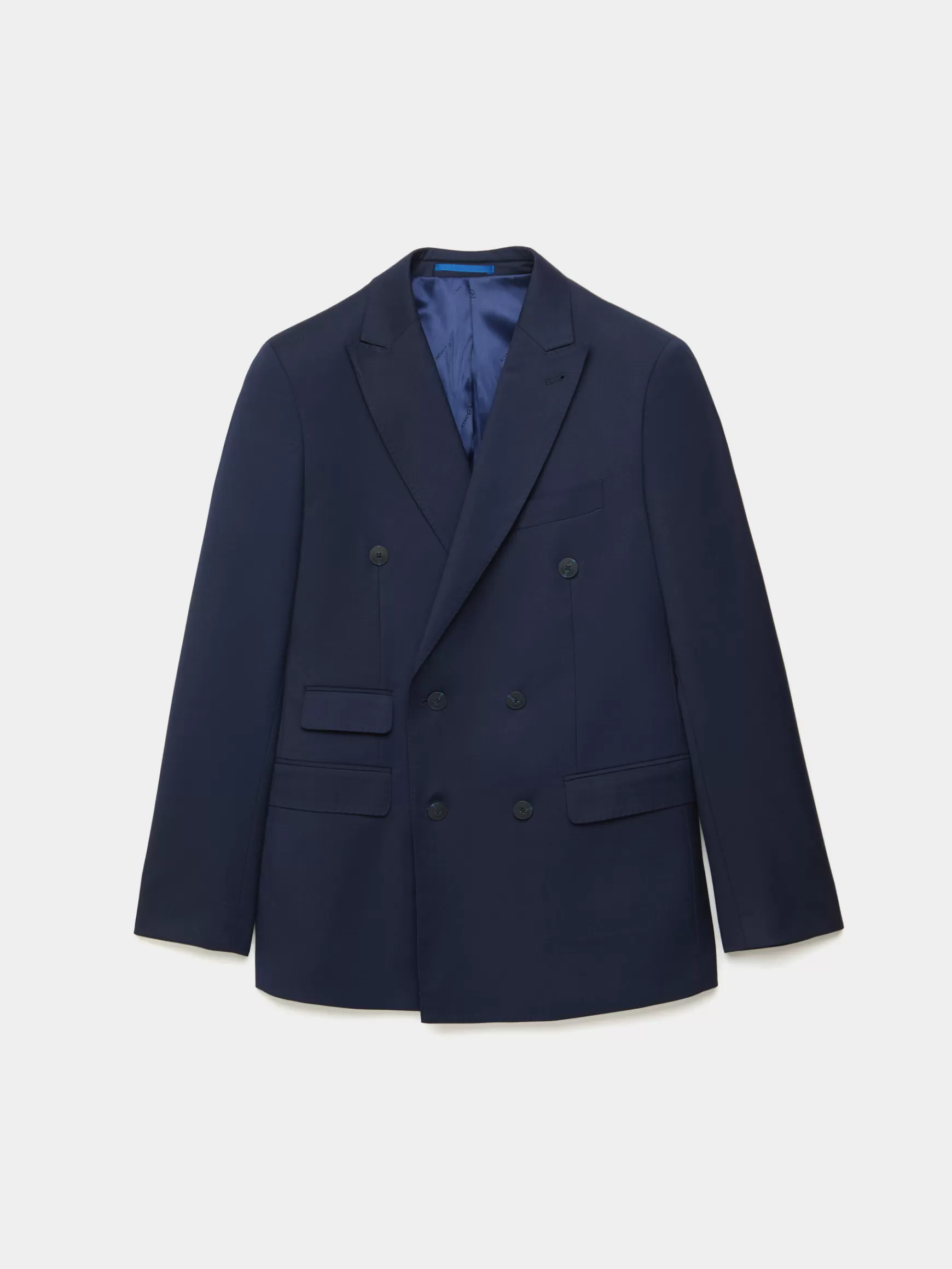 Americana de cierre central cruzado y con cuello y solapa. Bolsillo de ojal en el pecho, tres bolsillos de solapa en la cintura y puños con botones en su terminación. Interior forrado y con bolsillos.