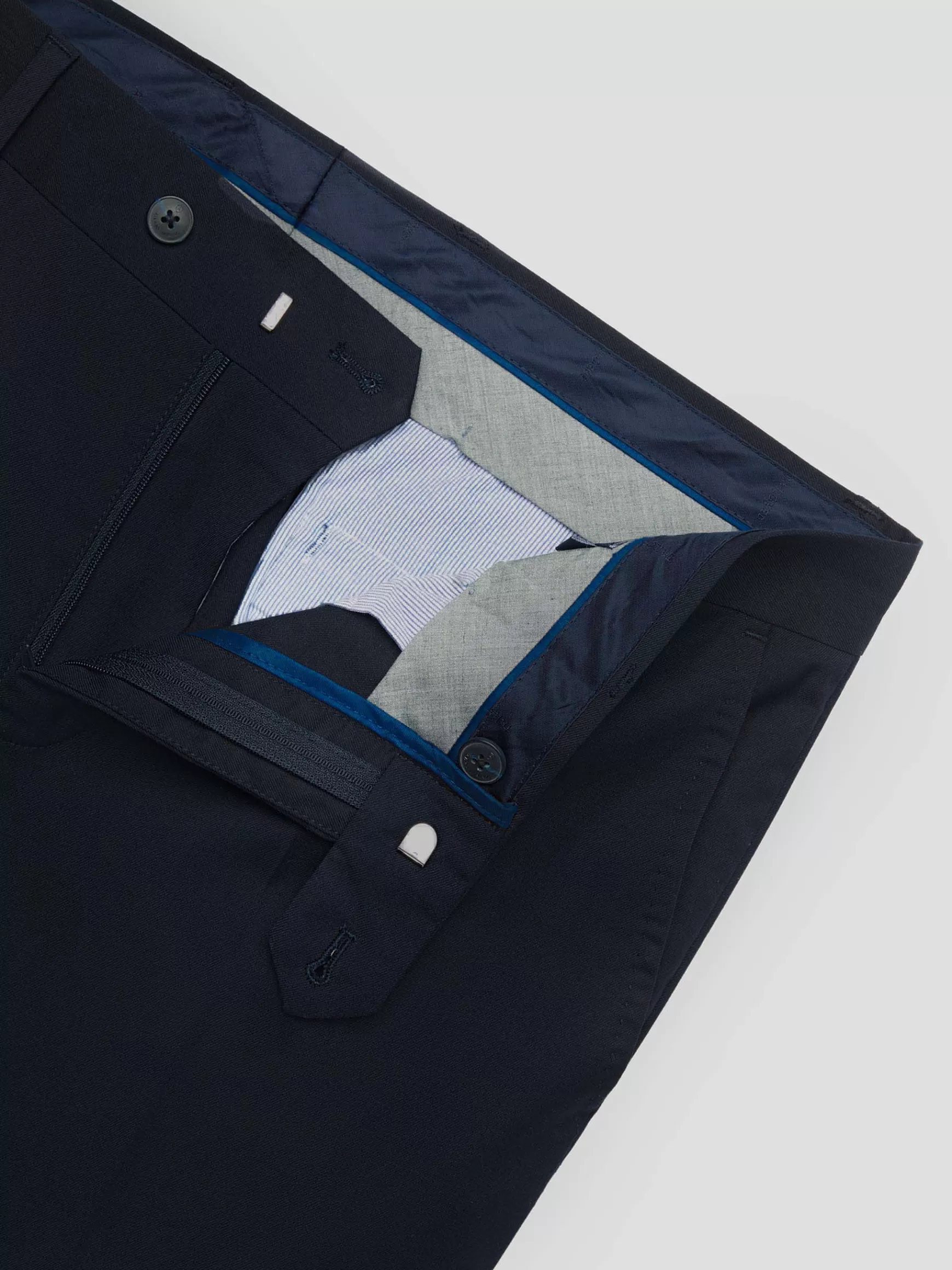 Pantalón de traje que cuenta con cierre frontal de cremallera y botones, dos bolsillos abiertos en la parte delantera y dos bolsillos traseros con cierre mediante botón. Forrado en su interior.
