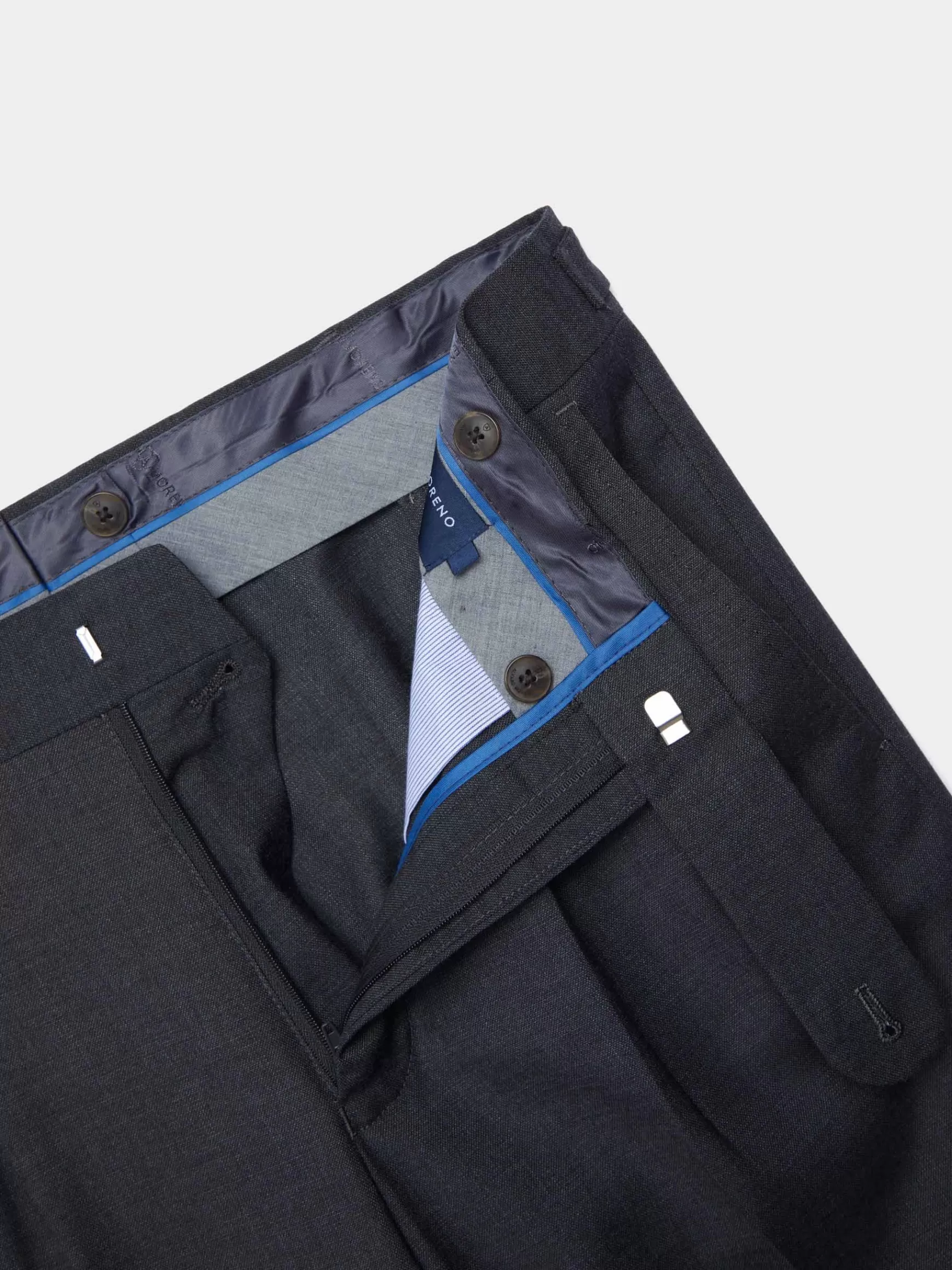 Pantalón de vestir confeccionado en tejido fil a fil. Presenta bajo con dobladillo cosido, ajustador en la cintura y cierre mediante botón y cremallera, dos pinzas en su parte delantera y dos bolsillos traseros. Forrado interiormente.